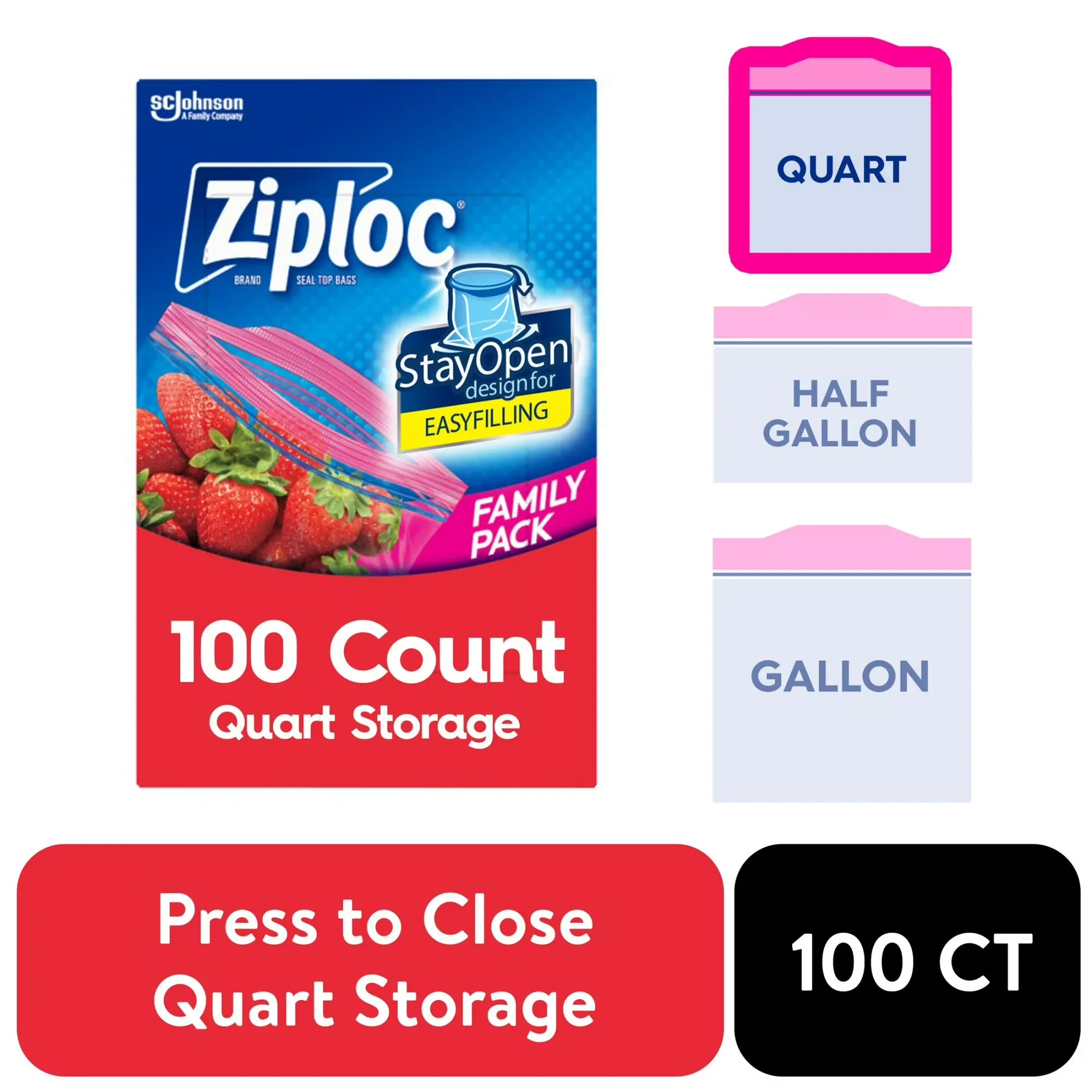 - Ziploc Brand Storage Bags, School Supplies, with Grip 'n Seal Technology, Quart, 100 Count Ziploc Brand Storage Bags, School Supplies, with Grip 'n Seal Technology, Quart, 100 Count