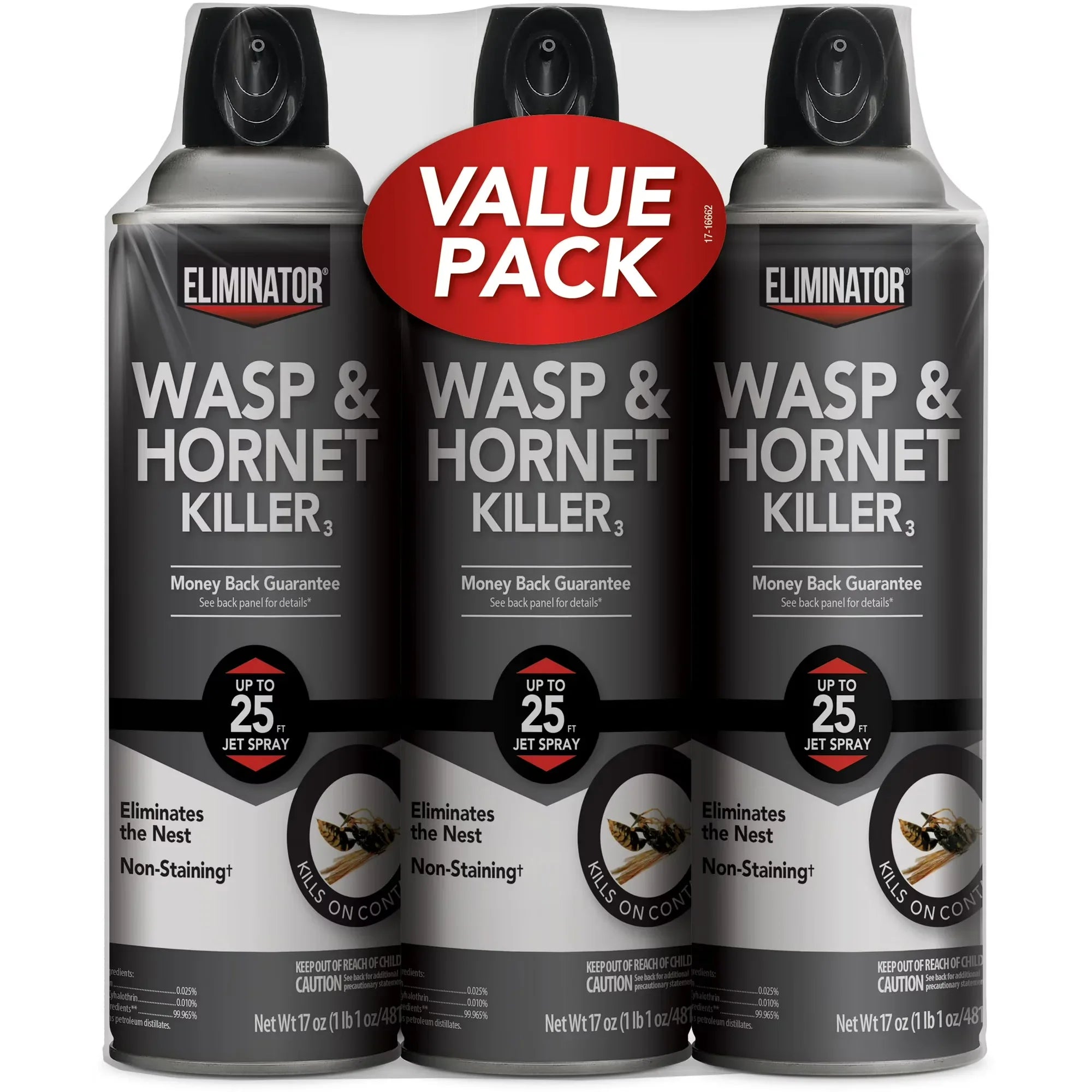 - Eliminator Wasp and Hornet Killer Aerosol, 17 Ounces, 3 Pack Eliminator Wasp and Hornet Killer Aerosol, 17 Ounces, 3 Pack